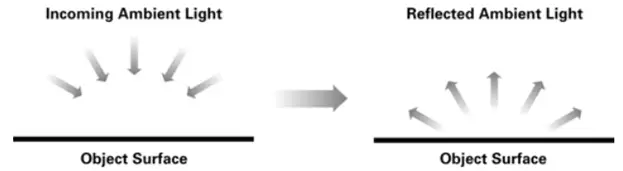 环境光照射结果 = 材质的反射系数 * 环境光强度
