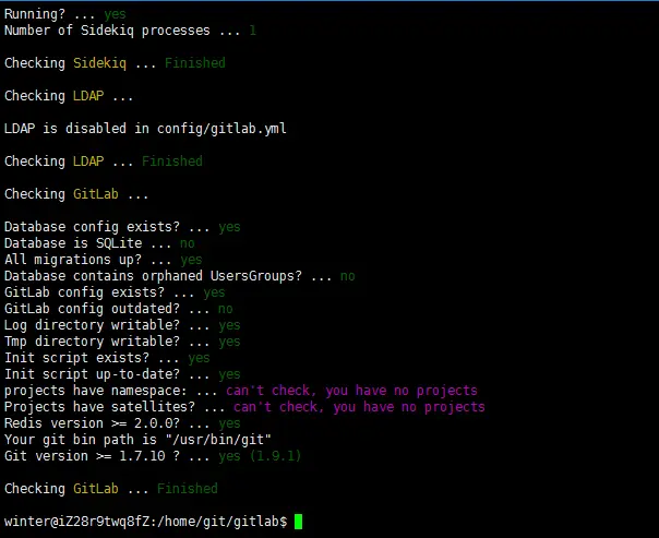 下面这图是check gitlab是否安装成功