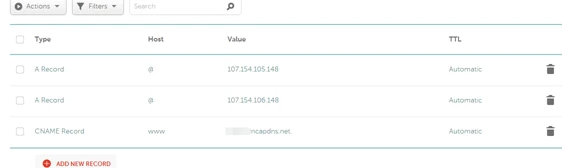 这是我在CDN里的DNS转换,下面是我的namecheap的Host Record