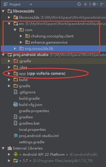新建一个Cocos2dx工程cpp-vuforia-camera,文件目录为