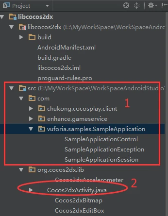添加Vuforia的接口之后的目录如上图红方框1所示