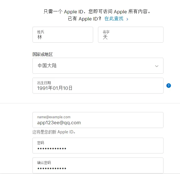 - 名字用汉字或者拼音写上去(注意写真实姓名,苹果审核可能会核查信息)