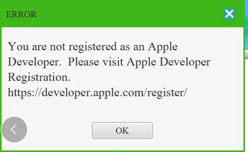如果报错下图,可能这个udid已经添加过,先关掉申请窗口,重新点右下角+ADD,选择开发版看有没有出现设备。