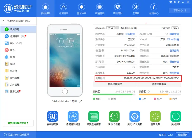 苹果手机助手获取UDID, 如爱思助手,电脑下载爱思助手,连上苹果手机,设备信息里面那个设备标识就是udid。