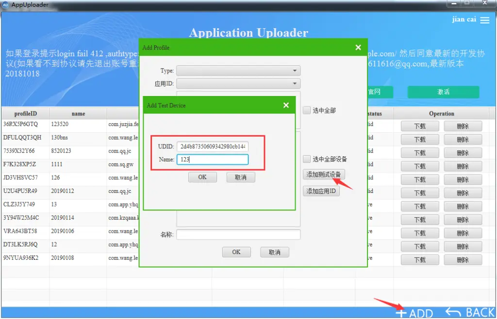 输入刚获取的udid(如果你的苹果手机链接了电脑,Appuploader会自动获取udid)