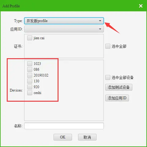 添加成功后选择开发版profile在设备栏就会出现刚添加的设备!