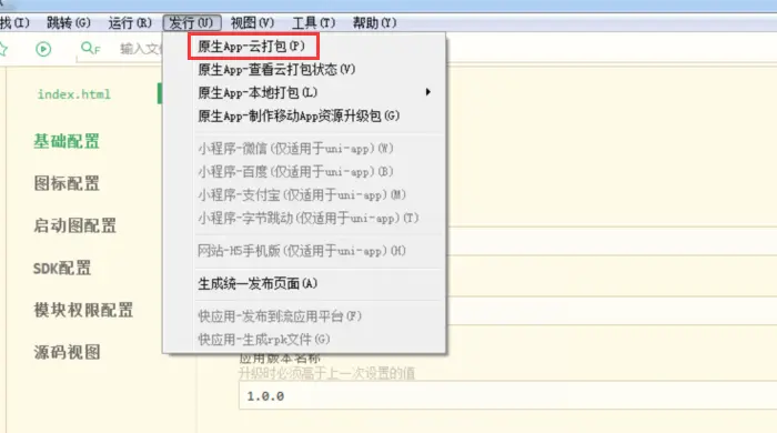 打开HBuilder工具,选择开发好的项目,点击发行,选择发行为原生安装包