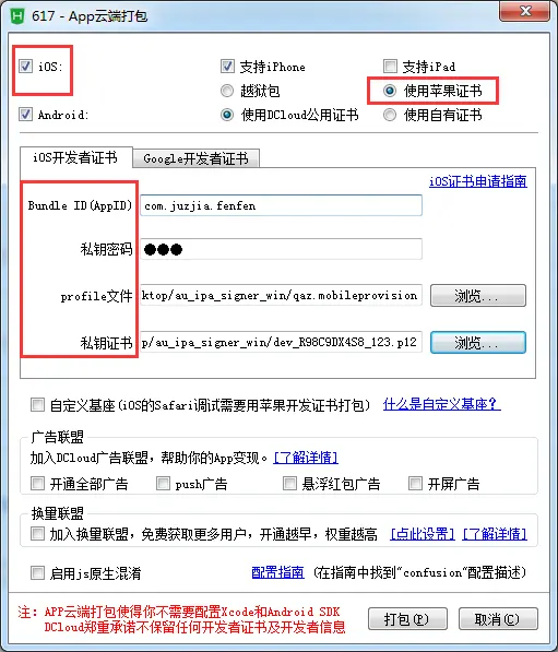 xcode打包和appcan打包无法使用,xcode需要付费开发者账号才能导出ipa