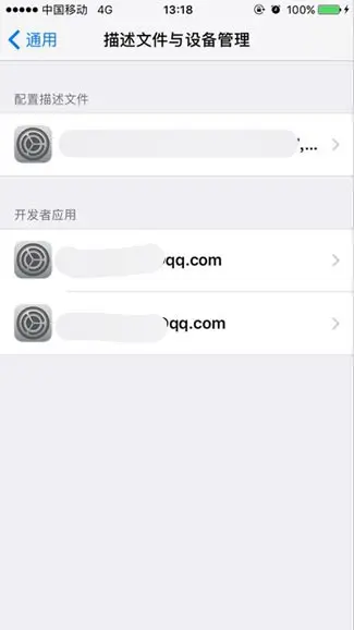 点击设置、进入通用,下拉选择描述文件和设备管理