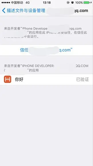 4、点击开发者应用下面出现的账号,信任,然后就能启动应用,不在出现提示