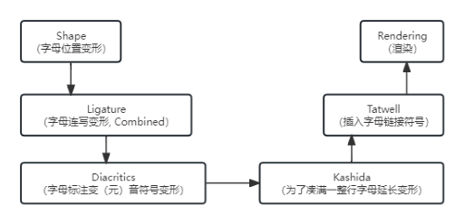 • 倒序 (阿语字符从后往前遍历,非阿语进栈,直至遇到下个阿语字符后再出栈)
