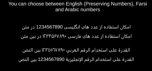 • Farsi选中后,数字将转为波斯语数字,取消选中,数字转为阿拉伯数字